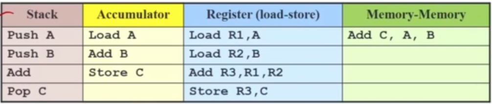 - Register-register (load-store) architecture