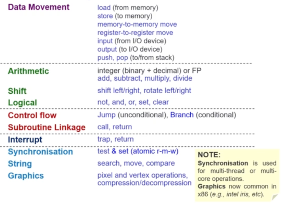 Operations in the Instruction Set