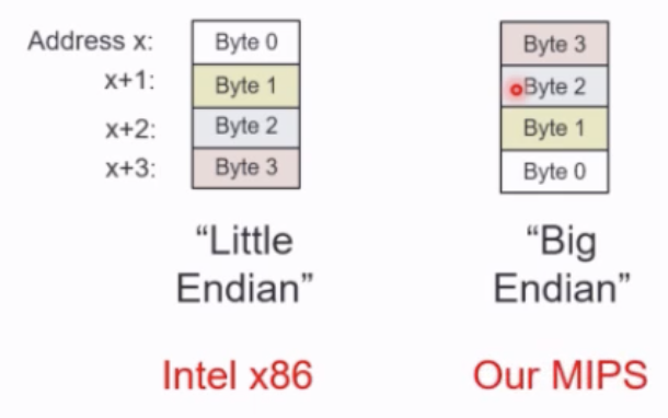 MIPS can be either, but the common and original convention for most MIPS implementations is big-endian. That means when you store a 32-bit integer (4 bytes) into memory, the most significant byte (MSB) goes into the lowest-address byte, and the least significant byte (LSB) goes into the highest-address byte.