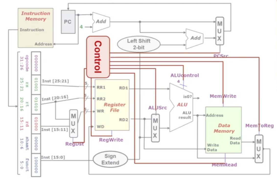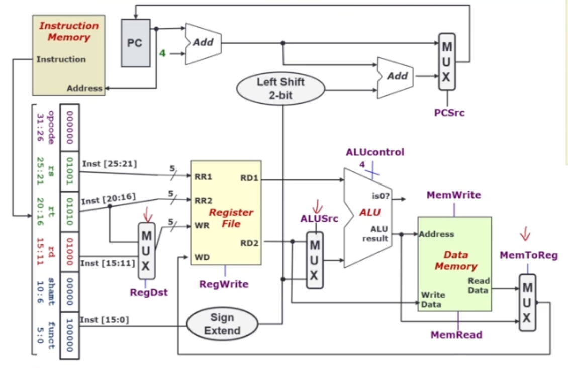 | MemRead/ MemWrite | Memory | Enable reading/ writing of data memory |