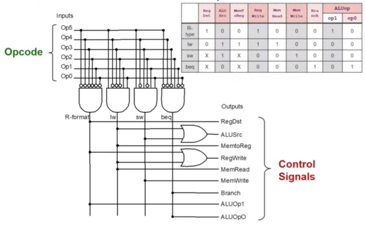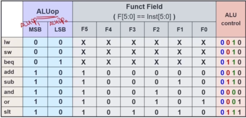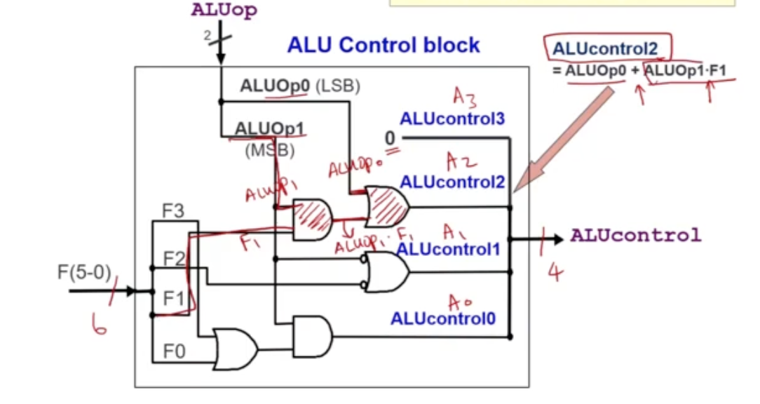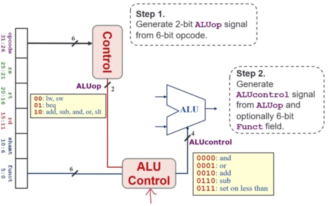 ALUopsignal (2-bit) and Function Code (6-bit) field to generate 4-bitALUcontrolsignal