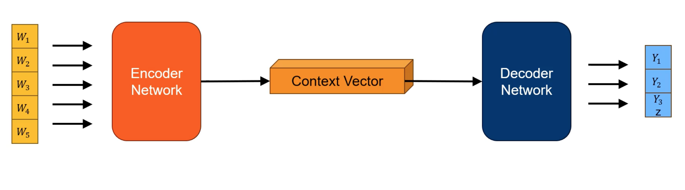 - Context vector has a weighted sum which gives the decoder state an idea of which context is more important