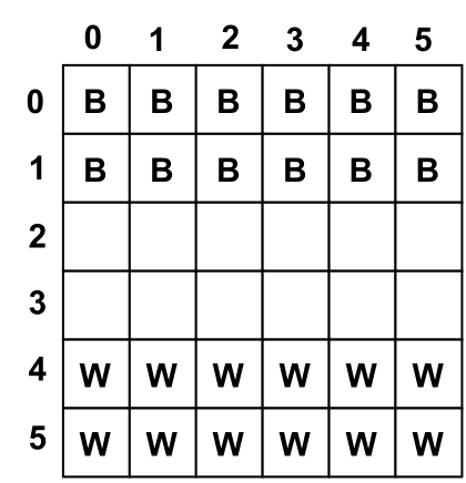 - Game is originally on a 7x7 board but has been simplified to a 6x6 board for the sake of this problem