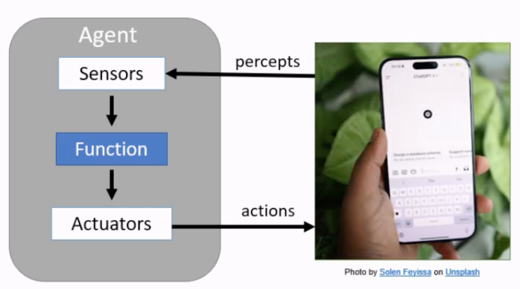 In the picture above, the car is an agent that has a few goals to achieve (e.g. reach a destination, save fuel, keep passenger safe). From these goals, you want to measure the performance of the car. A rational agent will then choose actions that maximize performance measure
