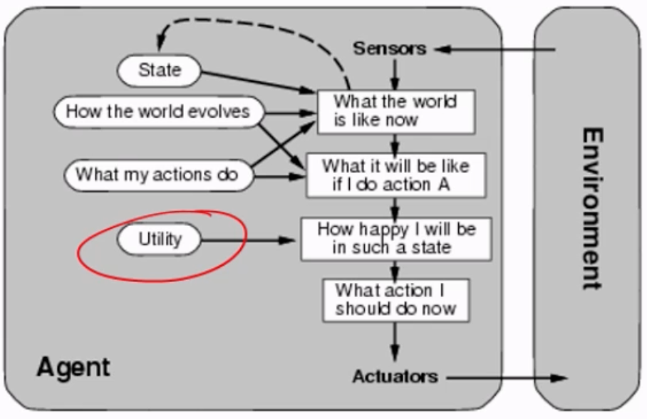 Adds an additional step to the goal-based agent, and from there decides what action to do.